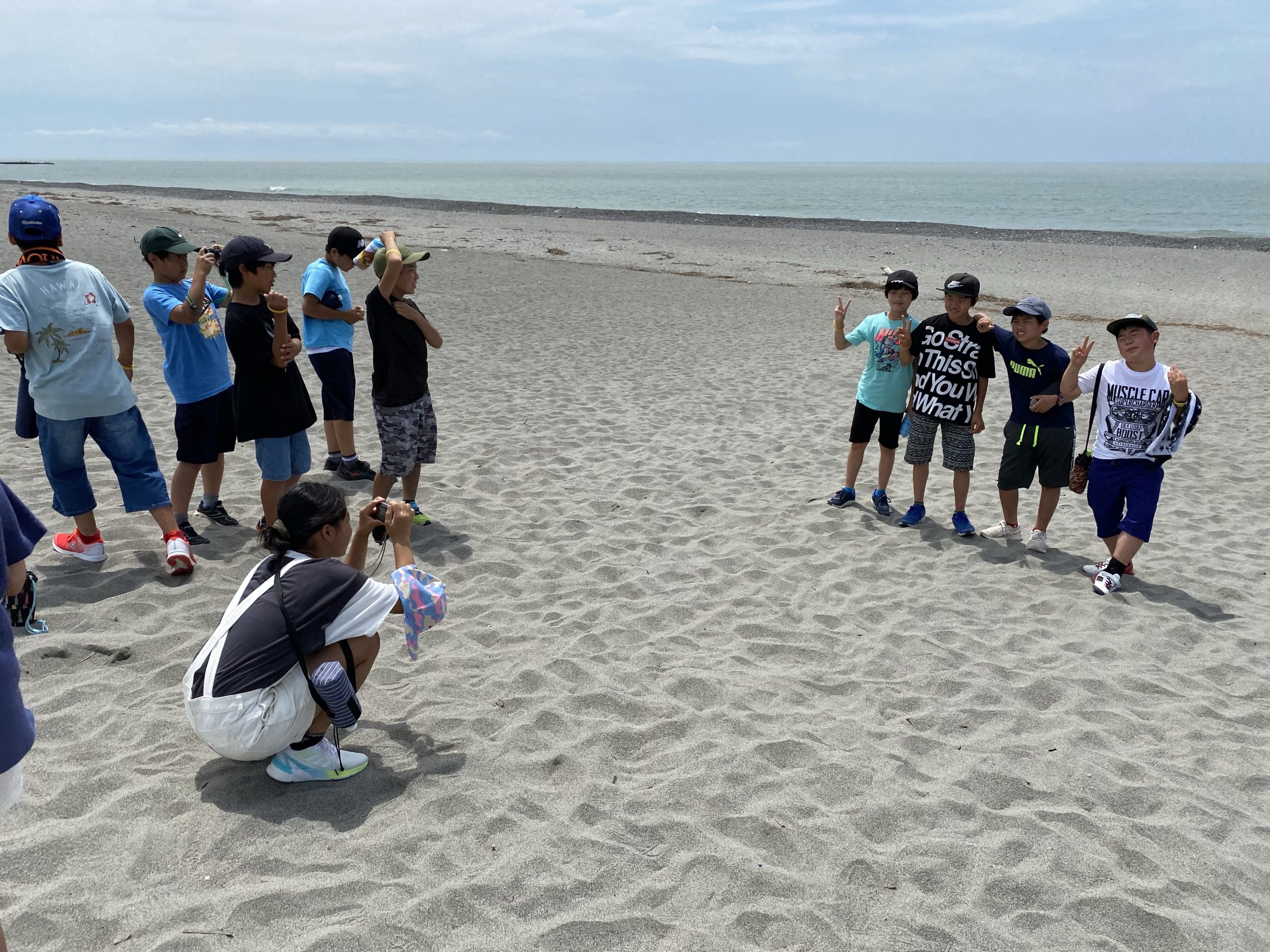 子どもたちからは」すげー」という驚きの声、「おぉ、、」という感嘆の声、「…」声にならない声、が聞こえてきました。海なし県の山梨県民にとって、やっぱり海は特別なものです。貝を見つけて拾っている子もいました。