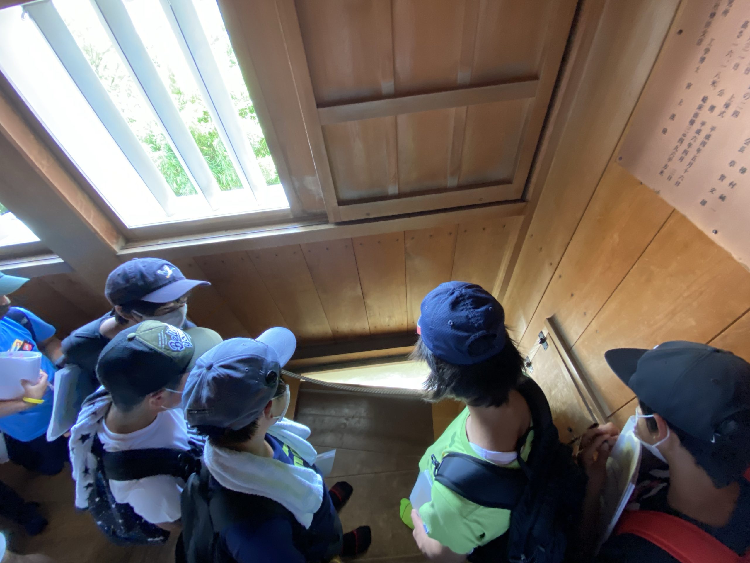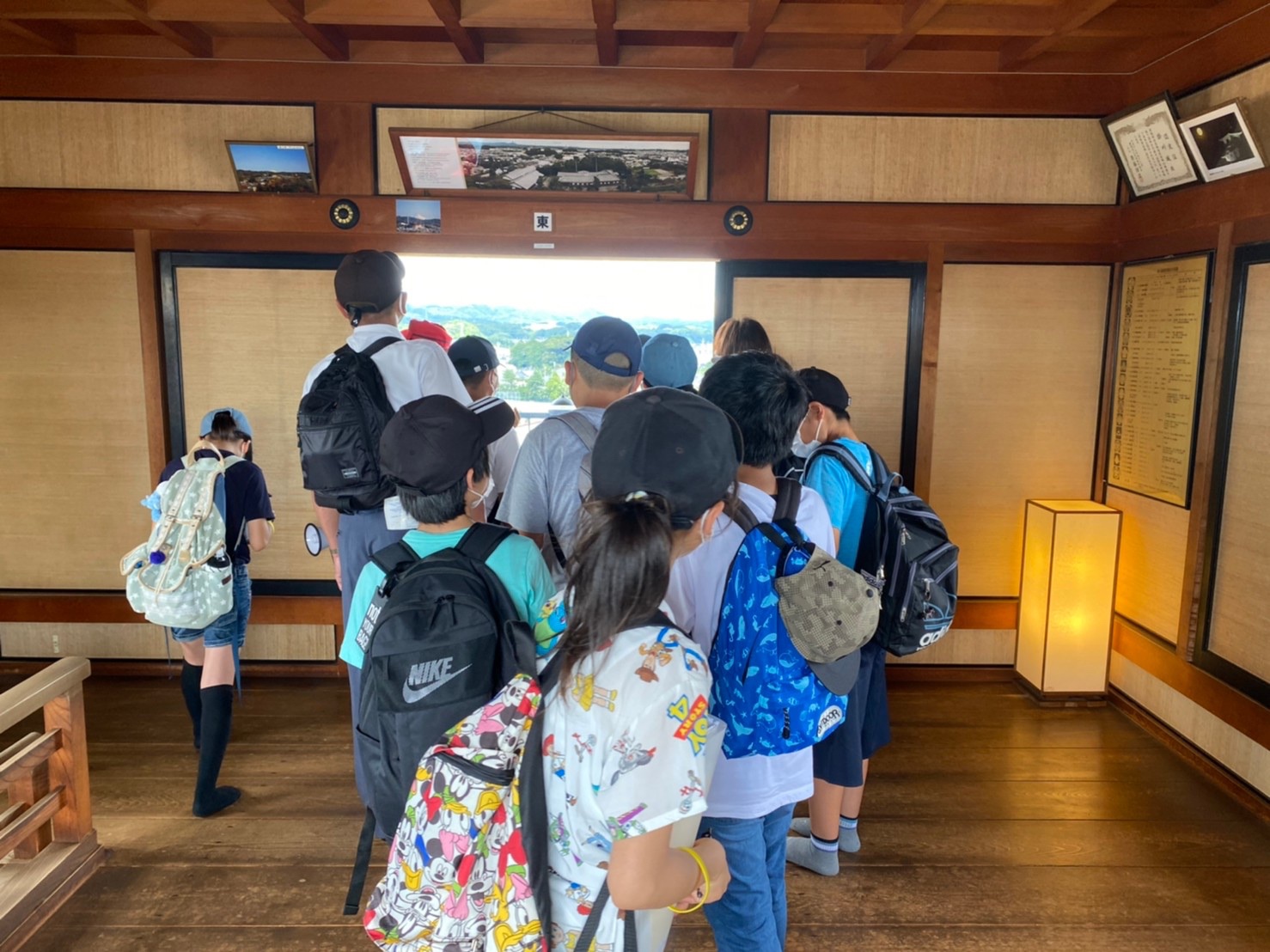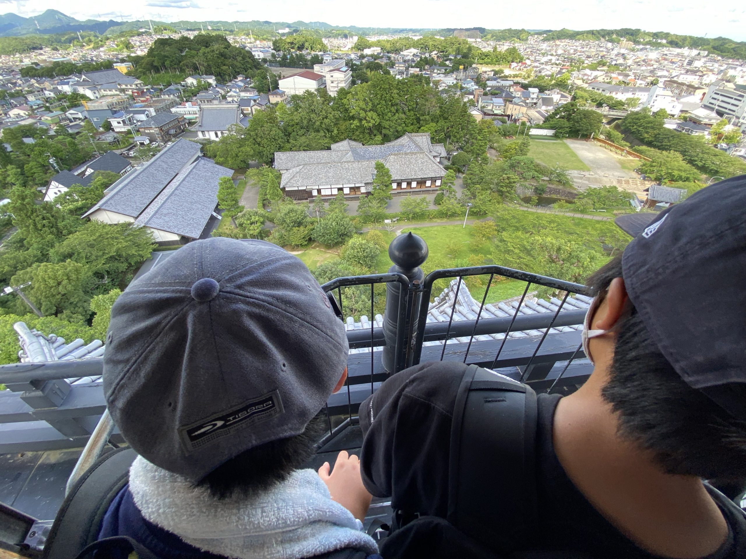 掛川城の木造天守閣は、日本で最初に復元されたものものだそうです(モデルにしたのは大阪城の天守閣)。天守最上階からの眺めは、青空効果もあり最高でした。その昔、掛川城に生きた人々もこのように城下を眺望していたかと思うと感慨深いです。子どもたちもお殿様気分(実際のお殿様が最上階に上がることはまれだったようですが、、)を味わえたようです。他にも、天守閣最上階に向かう急な階段、攻めてくる敵を攻撃するための石落としなど、天守閣の中には沢山の見所がありました。