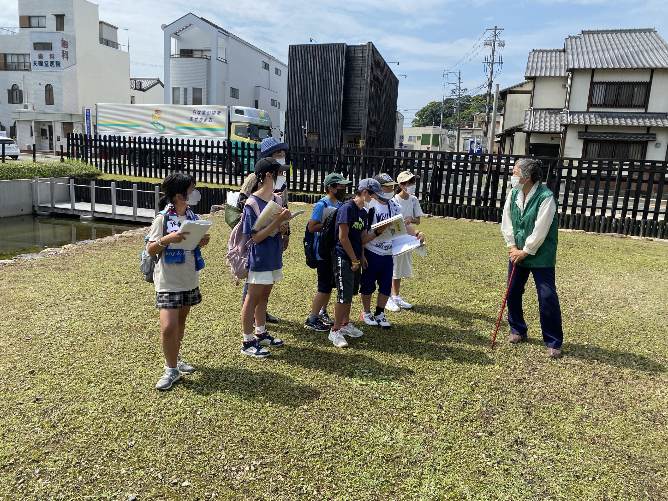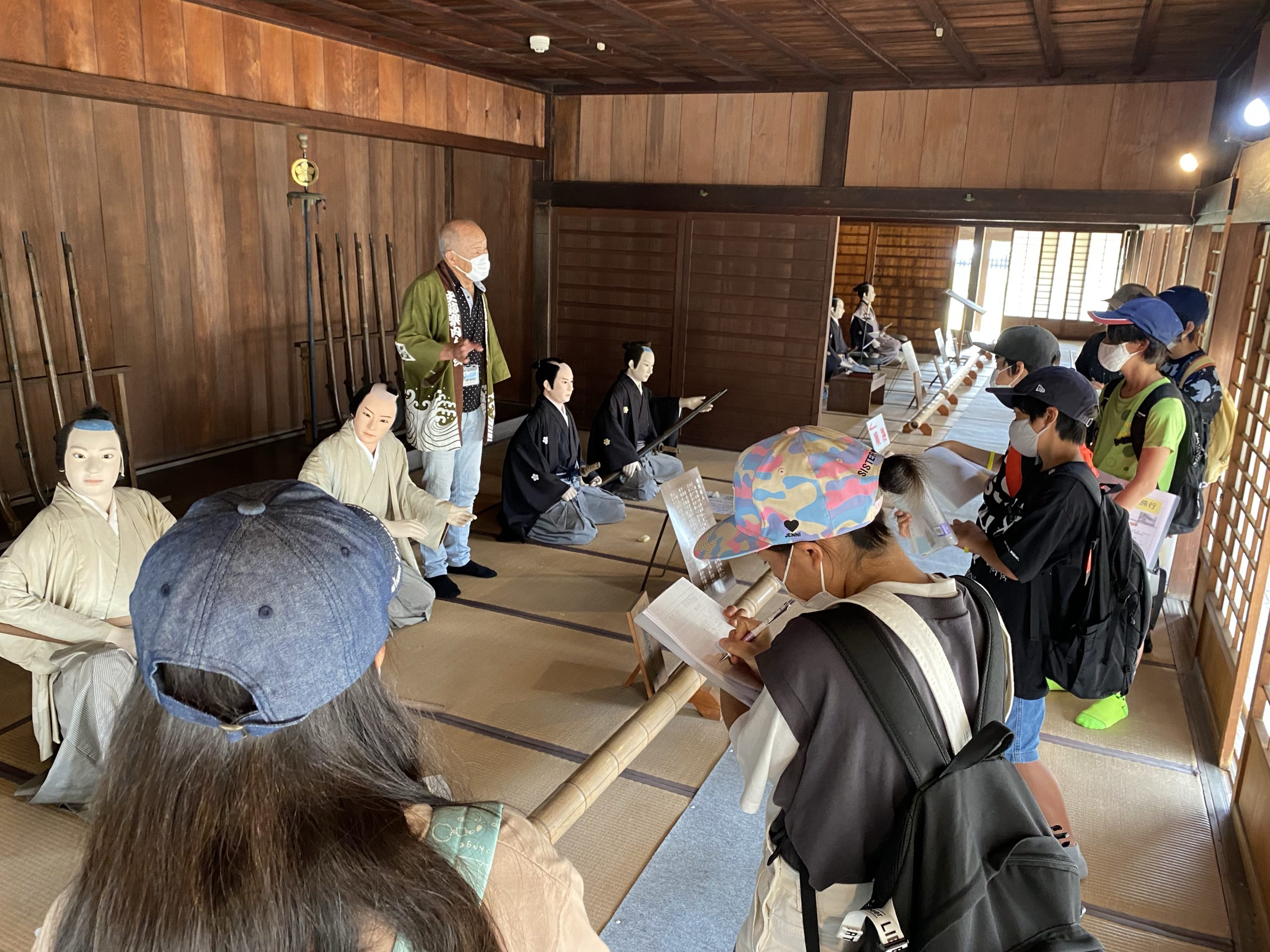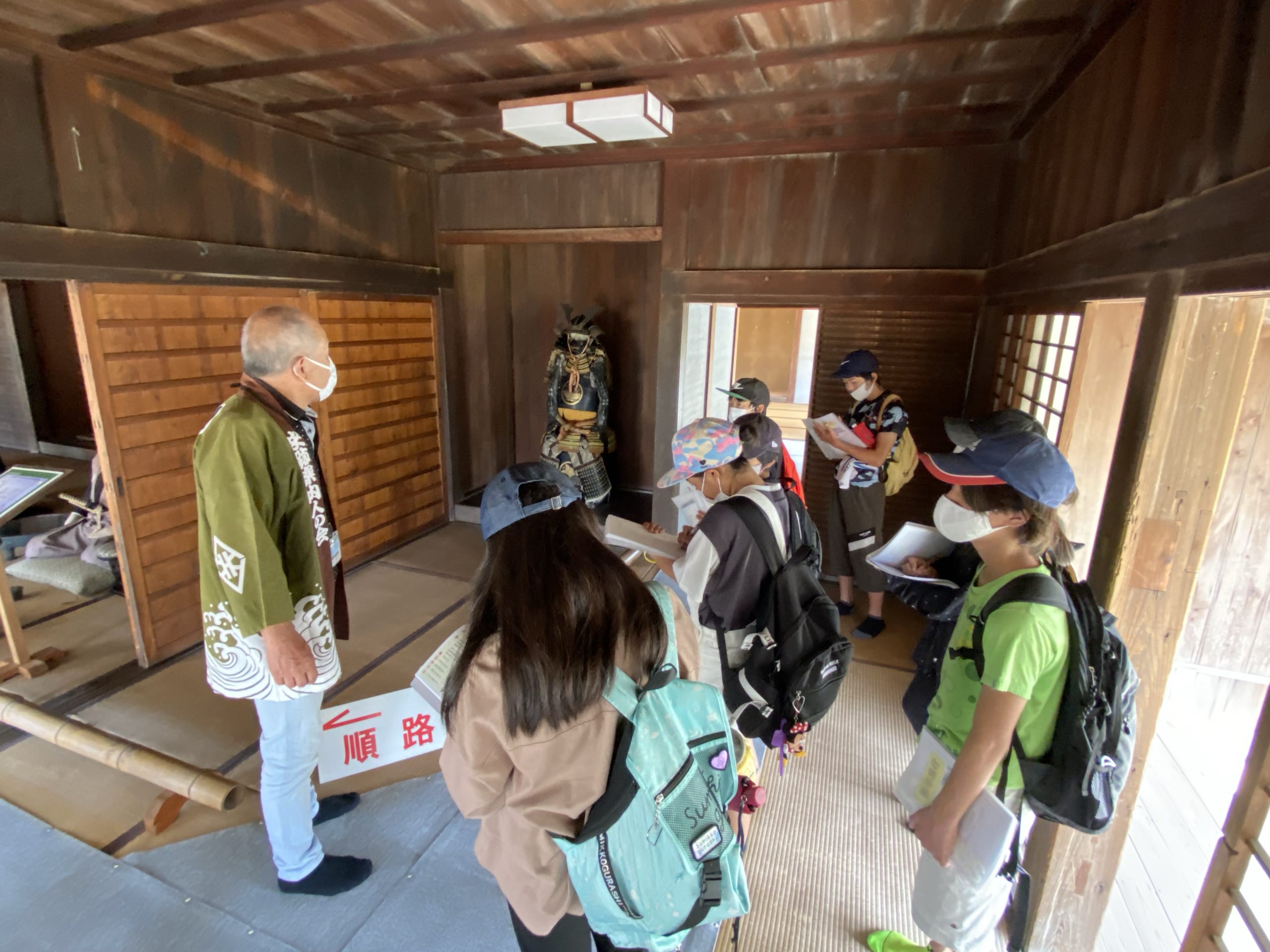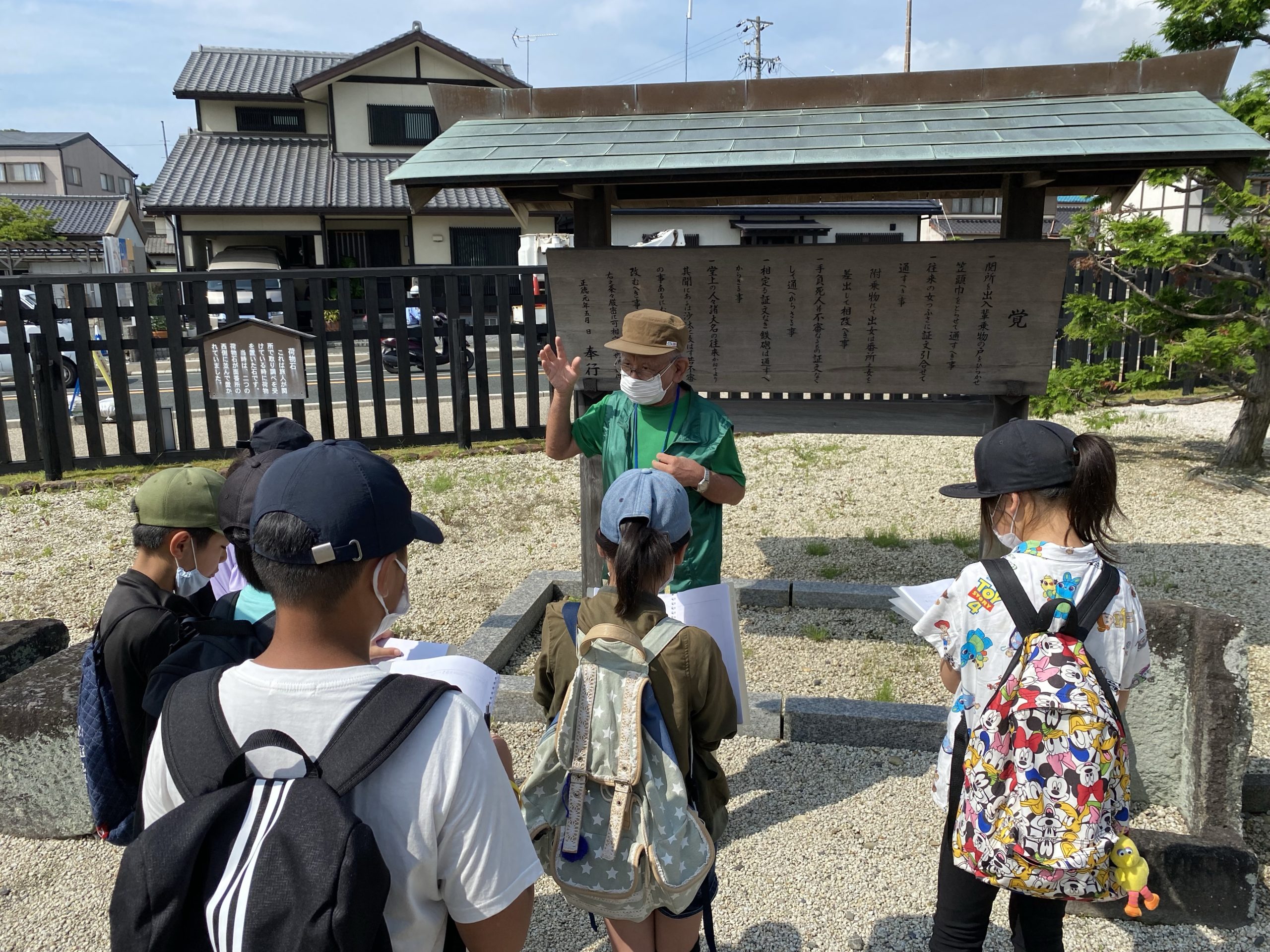 ガイドさんの話を聞きながら、関所の仕事や当時の人々の様子を学ぶことができました。また「入り鉄砲と出女」「通行手形」といった関所に関わる言葉も学ぶことができました。みんなよく学習していました。6年生は2学期に江戸時代の学習をします。今日の学習がかなり活かせそうです。