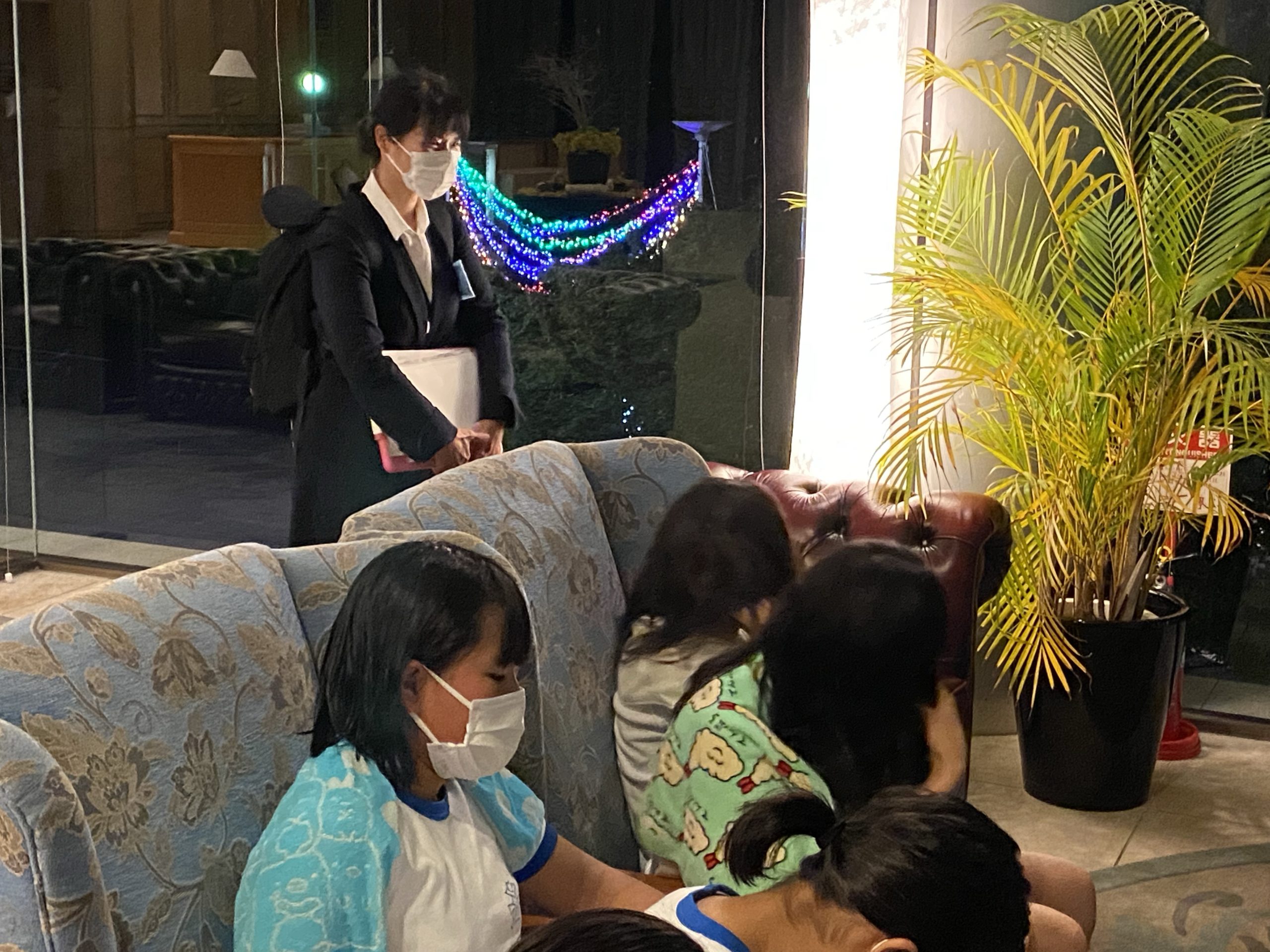 最後に、担任の先生から部屋での過ごし方、明日の日程について確認と連絡がありました。部屋長さんは、会議の内容と先生からの連絡を部屋の友だちに伝えます。集団生活の力は確実に伸びてきています。