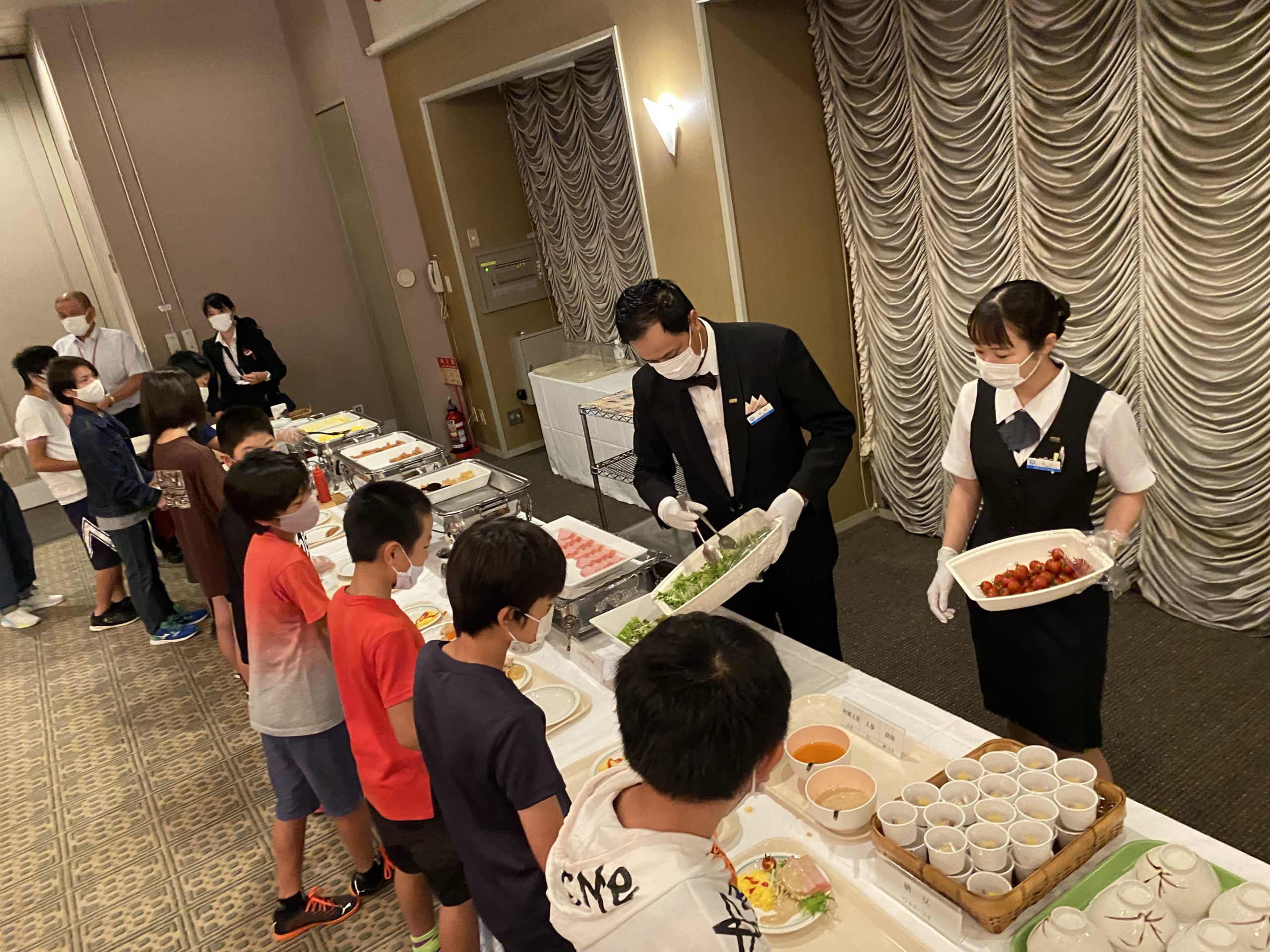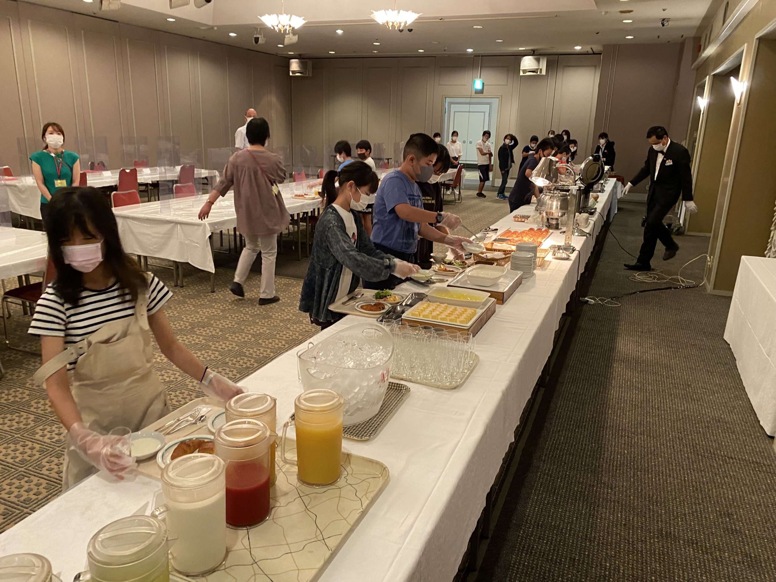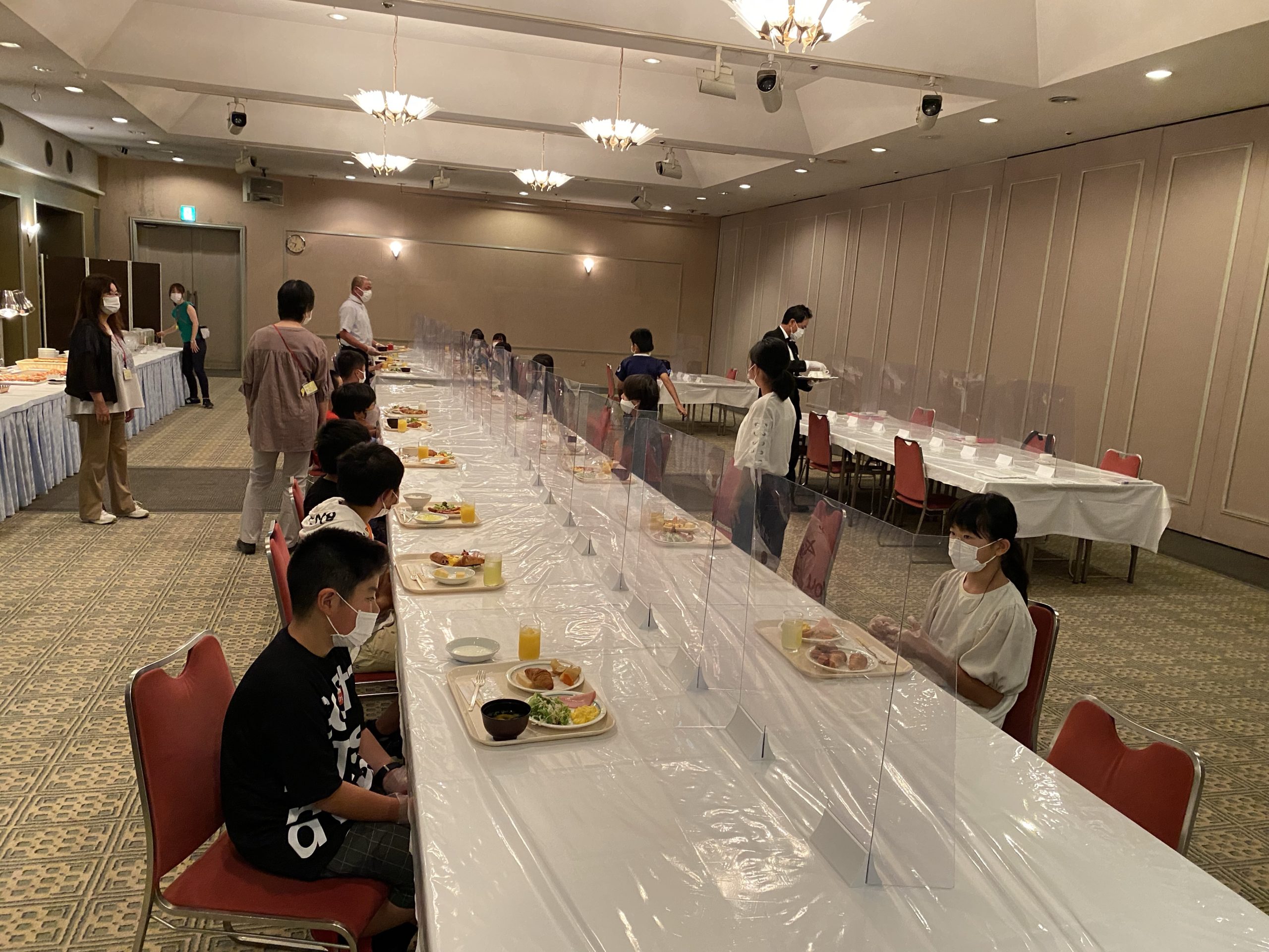 2021年7月16日 / 最終更新日時 : 2021年7月16日 明野小 6年生 3日目朝食 3日目の朝食はビュッフェスタイルです。 順路を守り、アルコール消毒、手袋をして自分が食べ切れる分だけお皿に盛り付けます。 バランスよく食べられるかな?家庭科の学習が活かされます! 今日は暑くなりそうです。 朝食をしっかりとって、暑さに負けないパワーをつけます。
