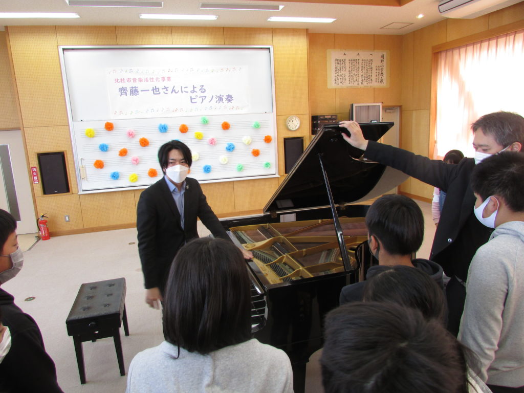 12月10日(金)にピアニスト 齊藤一也さんが来校し,6年生にピアノ演奏を聴かせてくださいました。