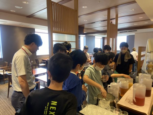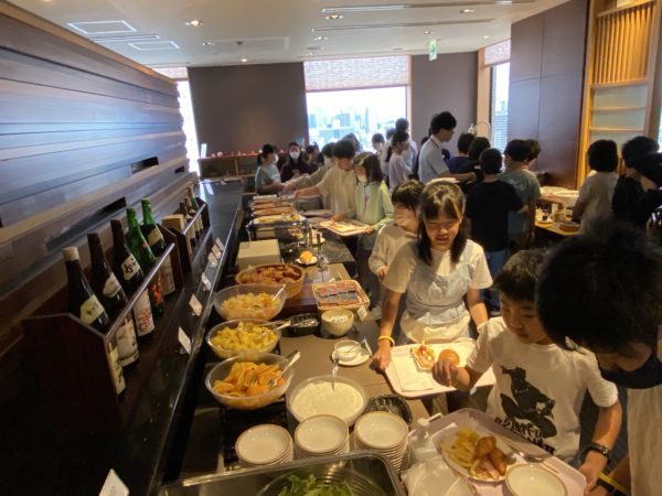 たくさんの料理が並びます。子ども達の手が伸びます。