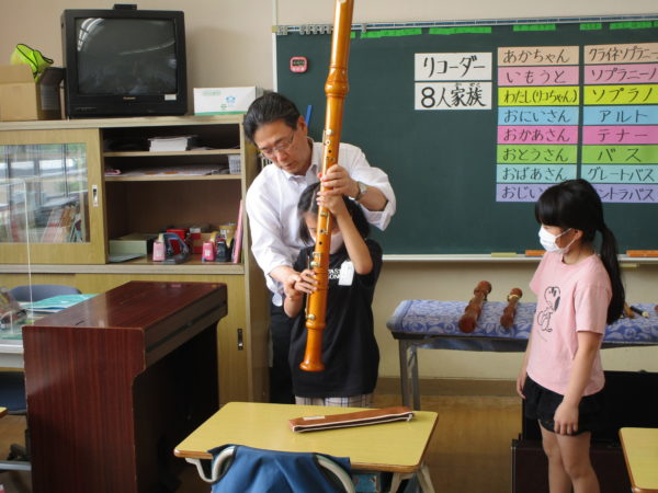 2023年6月20日 / 最終更新日時 : 2023年7月3日 明野小 3年生 リコーダー講習会 3年生がリコーダー講習会を行いました。 講師の先生に来ていただき、リコーダー演奏の魅力を教えていただきました。 様々な大きさのリコーダーも紹介してもらい,子どもたちは興味津々でした。 この授業をきっかけにリコーダー学習をより意欲的に進められそうです。 講師の澤登先生,お忙し中ありがとうございました。
