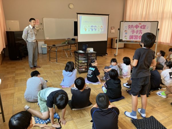 熱中症予防の対策,7点について詳しく説明があり,子どもたちは熱心に聞いていました。