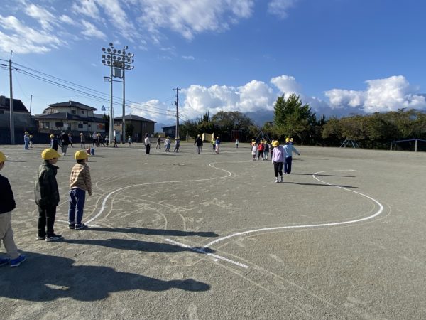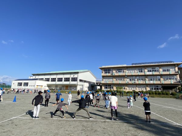 6年生が企画してくれた「ドッジボール」「だるまさんがころんだ」「へびじゃんけん」などのゲームを班ごとに行いました。