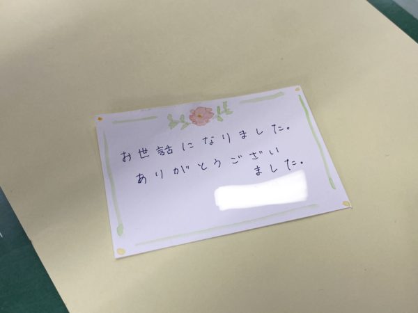 最終日には,全職員にお礼のメッセージを配ってくれました。