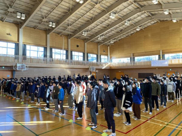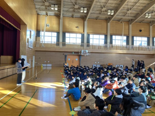3学期の始業式前には全員で能登半島地震の犠牲者に黙とうを捧げました。