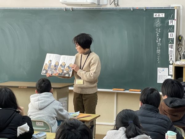 2024年1月16日 / 最終更新日時 : 2024年1月16日 明野小 全校 ほんよみさん 今日は3学期最初のほんよみさんでした。 1年生『おむすびころりん』(紙芝居) 2年生『寿限無』『げんきだしていこう!のおまじない』『十二支のしりとり』 3年生『コンビニてんちょうネコイチさん』『まるがいいっ』 4年生『宇宙人の宿題』 5年生『はつてんじん』 6年生『ペンギンかぞくとおそろしい山』 を読んでいただきました。 3学期のほんよみさんが始まるのを子ども達は楽しみにしていました。 2024年もよろしくお願いします。