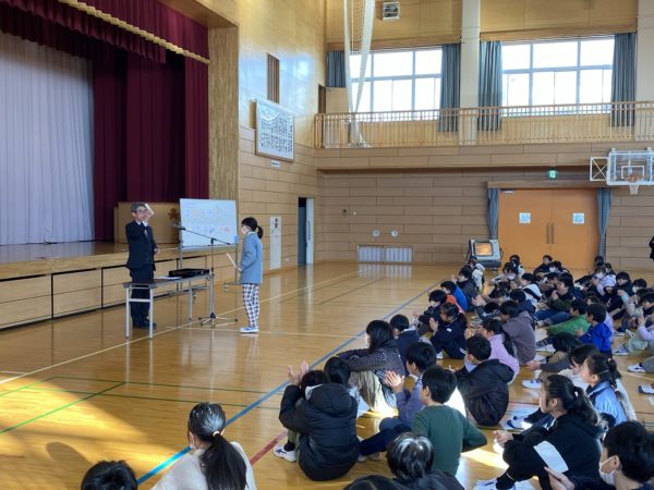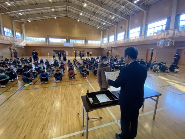 業前の時間に学校集会が行われました。