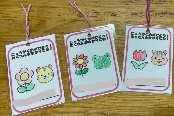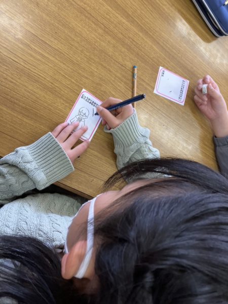 みんなで色を塗ったり手書きでイラストを描いたりと,1年生にしおりを使ってもらうために心を込めて作りました。