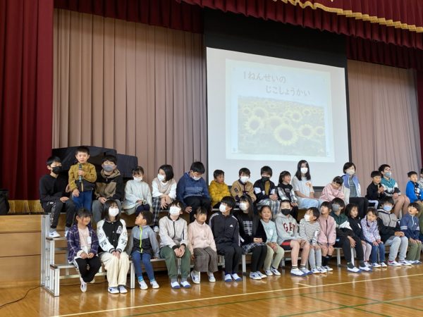 1年生の自己紹介。自分の名前だけでなく,好きなもの,そしてその理由までしっかりと言えました。