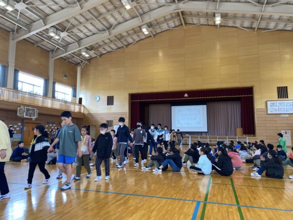 「にんずう集めゲーム」では,全校児童が『もうじゅうがり』に出発!