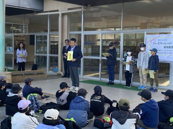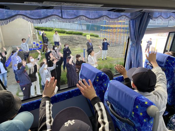 教頭先生や先生方もお見送りに来てくれました。下級生からのあたたかいメッセージも!うれしいですね。