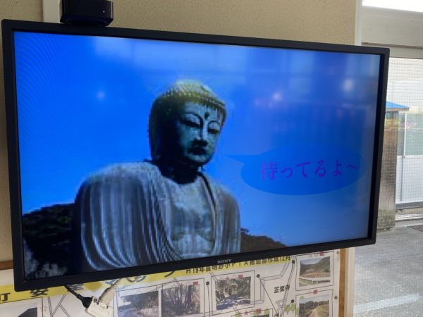 (そういえば、今朝、明野小玄関のモニターに大仏様からのメッセージがあったなぁ!)