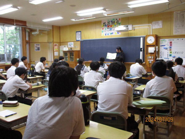 今日は明野中学校でも,ほんよみさんが出張して読み聞かせをして下さいました。