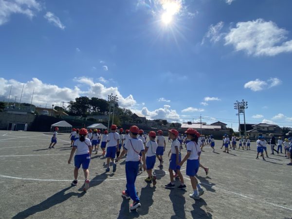6年生は全員前方へ,そして5年生が横へ広がる形になりました。