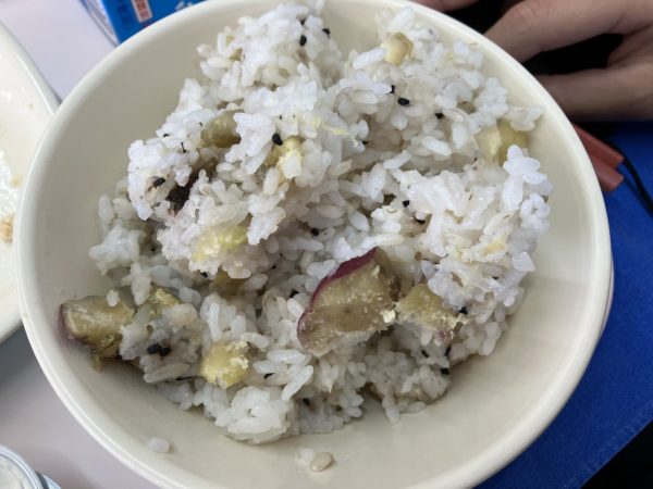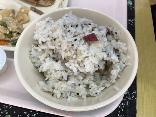 今日は明野の特産品「明野きんとき」を使った「さつまいもご飯」が出ました。