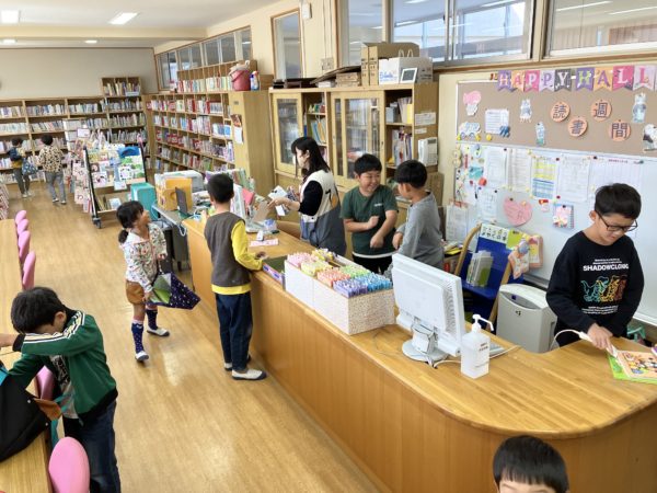 2024年10月21日 / 最終更新日時 : 2024年10月21日 明野小 全校 読書週間がはじまりました 明野小学校の読書週間が始まりました。 朝学の時間に図書委員が各クラスに読書週間のお知らせに行きました。 休み時間や昼休みにはたくさんの人が図書室に来てくれました。 読書郵便、読書ビンゴ、先生方のおすすめ本など色々なイベントに参加していました。 今日は大忙しの図書委員でした。