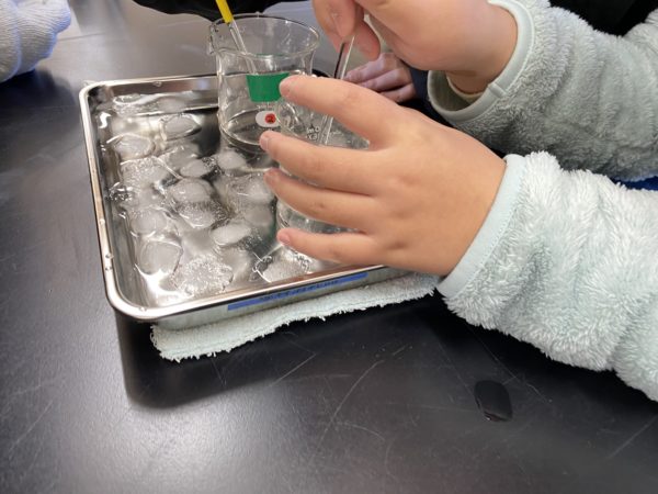 予想をもとに,蒸発させて水を減らしてみたり,氷水で水の温度を下げたりしました。