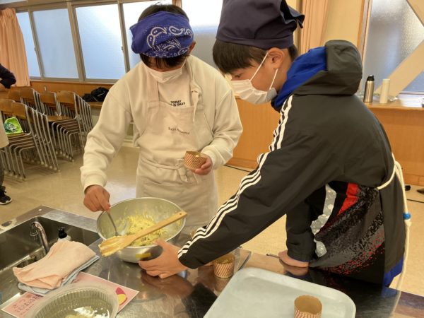 6年生はジャーマンポテトとマフィンを作りました。