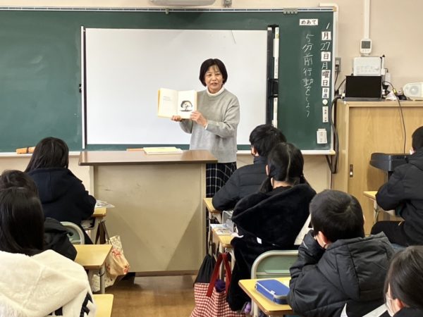 今日6年生に読み聞かせをして下さったのは明野中学校の司書の先生です。