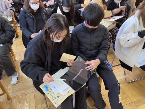 お家の方が6年後の子どもに宛てた手紙を読んでいる人もいました。