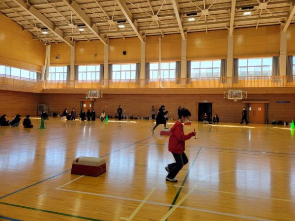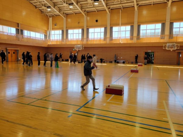 縦割り班ごとに「学校クイズ」に答えたり、親子で障害物リレーをしたりしました。