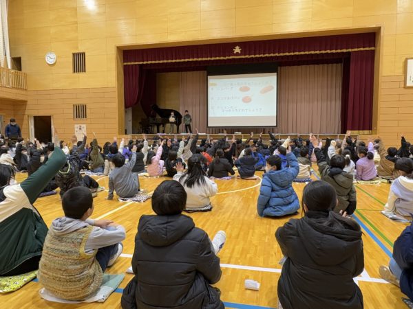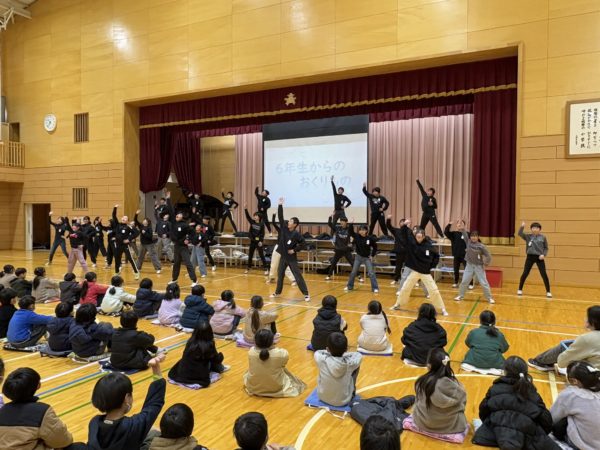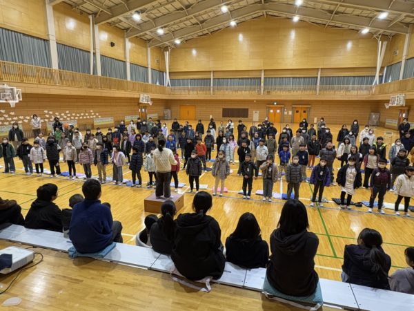 6年生からのお返し(お礼)は,力強いソーラン節と合唱。