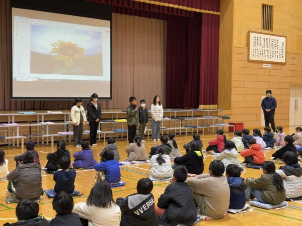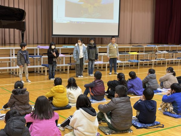 1~5年生が感想を交流,そして新児童会役員からは,6年生を送る会へ協力してくれたことへの感謝が伝えられる場面がありました。