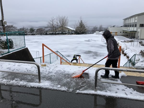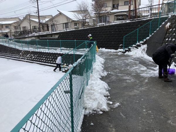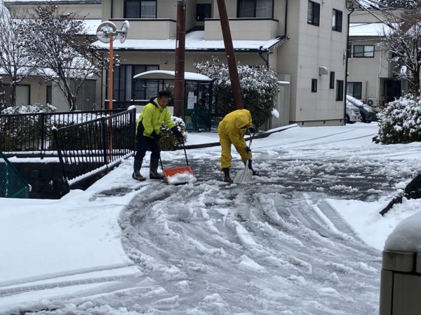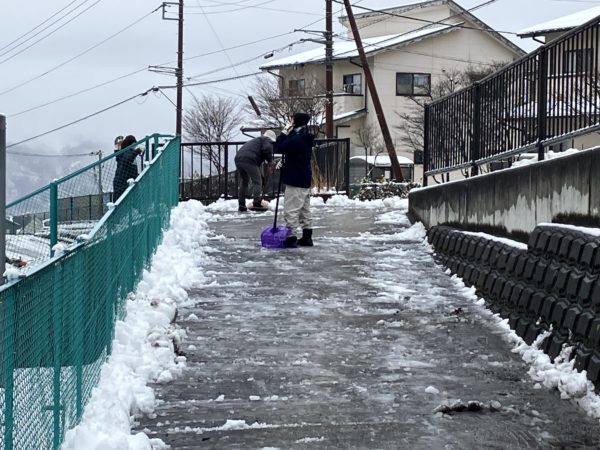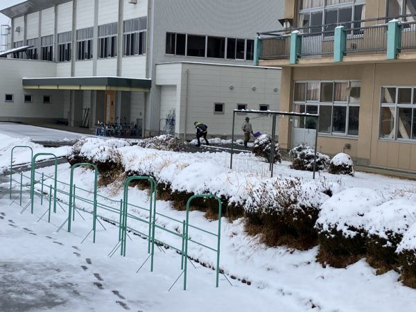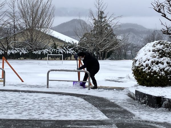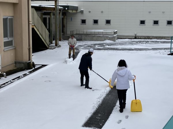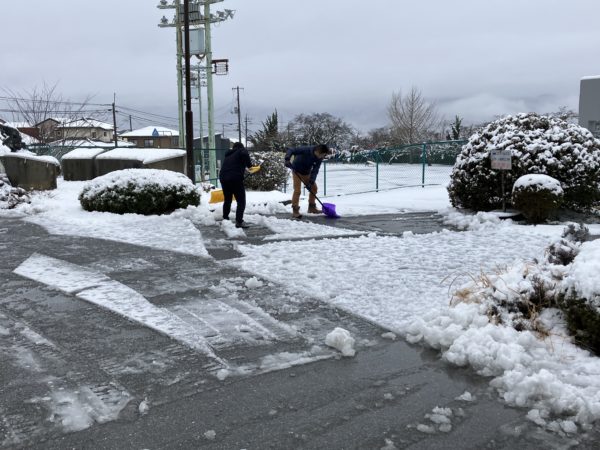 早朝から職員総出で雪かきをしました。
