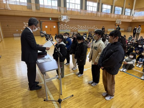 書き初め大会の入賞者,家庭の日の作文入賞者,火災予防啓発標語コンクールの入賞者,八ヶ岳少年自然の家の思い出を描く作品展入賞者