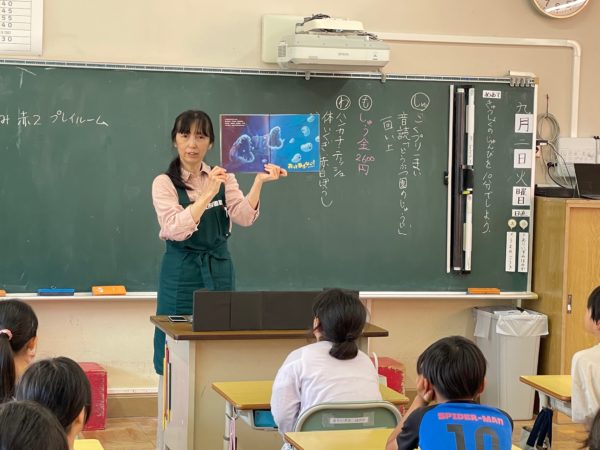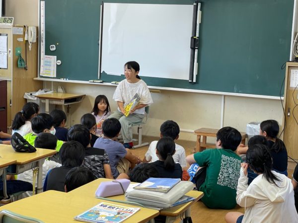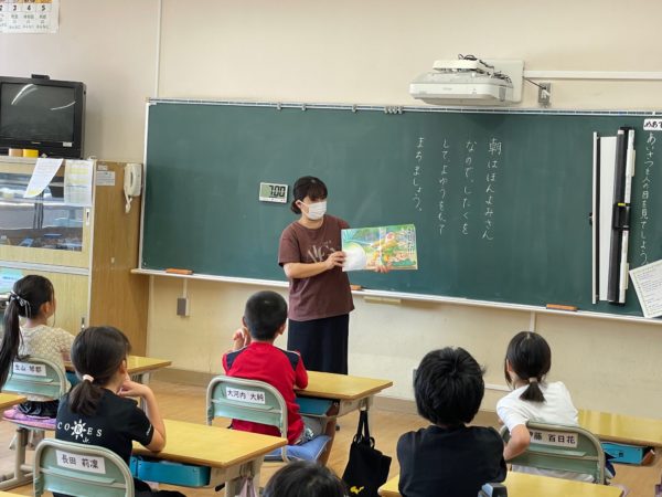 今日2年生で読み聞かせをして下さったのは、すたま森の図書館の方です。