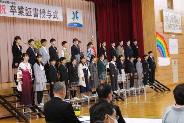 朝の天候から天気が回復し暖かな日差しの中で無事終わることができました。どの卒業生も晴れやかな笑顔で27名全員が卒業していきました。皆、新しい世界に旅立ってほしいです。4・5年生も立派でした。明野小学校としての大きな学校行事が無事終了しました。保護者の皆さまご協力ありがとうございました。