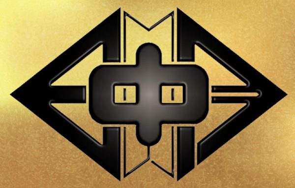 明野中の校章は漢字の「明」を菱形の形に配置しその間にひらがなの「の」をデザインして,全体で明野中の文字を表現しています。