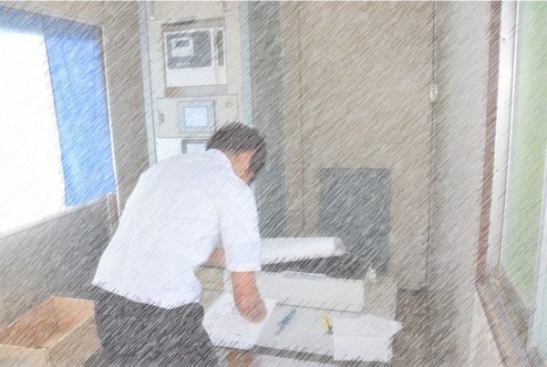 毎正時のデータと日集計が印字された記録紙を二人一組でPCデータに集計し,月ごとの気象集計を行います。ここの入力を間違えると誤った気象データになるため気が抜けません。
