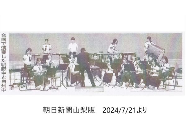 昨年度末に白州中を指導している仲田光昭先生から提案があり実現したもので、常勤の音楽教員不在の明野中に仲田先生が何度も練習に訪れて、指導をしてくださいました。