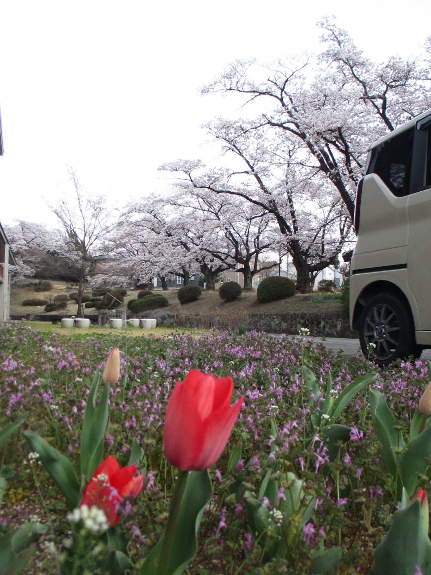 静かな学校に、鮮やかな桜色だけが春の訪れをそっと知らせてくれているようです。