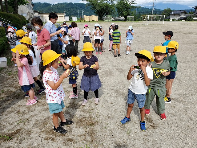 2020年7月30日 / 最終更新日時 : 2020年7月30日 白州小 ブログ おいしいスイカをいただきました。 白州町でスイカを栽培している寿風土ファーム様よりスイカをいただきました。冷やしておいて,暑い日に全校のみんなで食べました。甘くておいしいスイカに,子どもたちも大喜びでした。ありがとうございました。