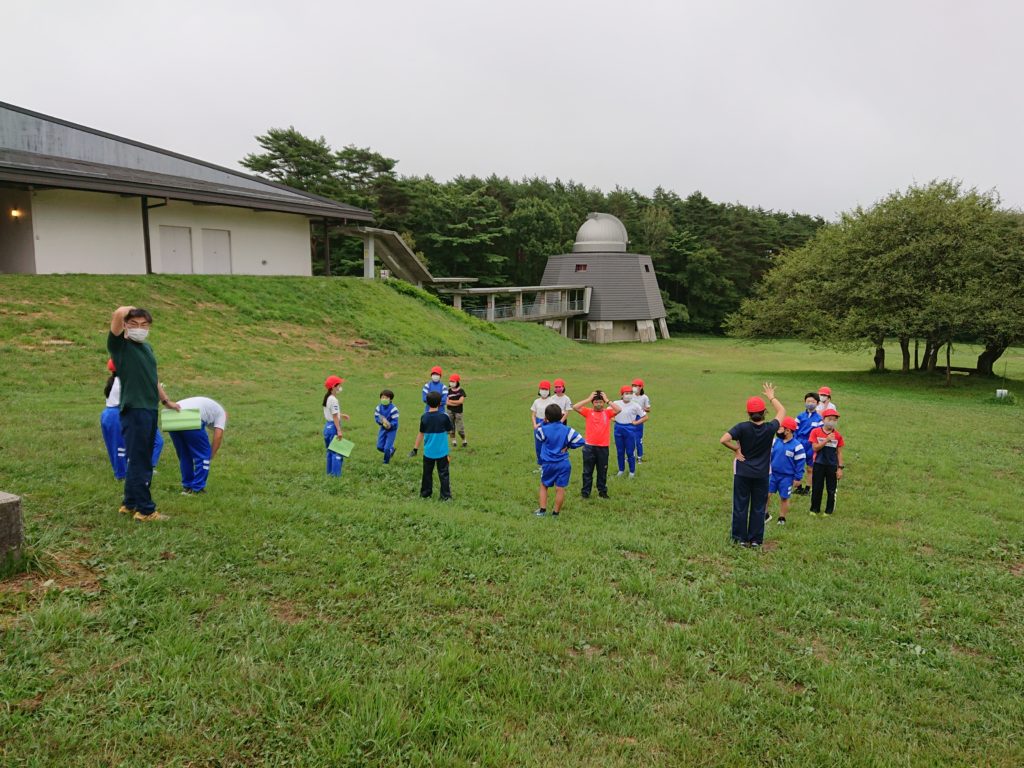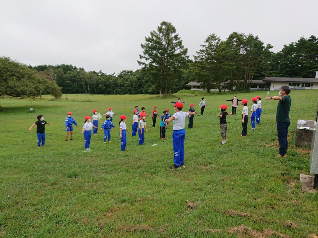自然教室の2日目がはじまりました。ラジオ体操からスタートてす。