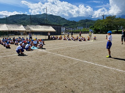運動会に向けての全校練習が始まりました。今日は、並び方の確認や縦割り班での活動を行いました。