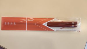 皇居外苑にて、修学旅行最後の食事。使ったお箸は持ち帰ることができます!