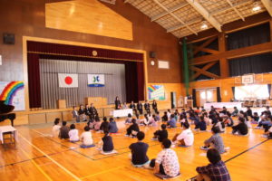 その後の入学式準備では、5・6年生がテキパキ働き、明日の入学式の会場を整えました。