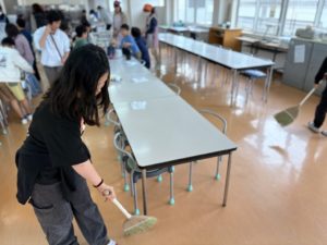 2026年4月10日 / 最終更新日時 : 2026年4月10日 白州小 ブログ 4.8 全校で一緒に給食 今年度から、全校でランチルームに集まり、給食を食べることになりました。 新型コロナウイルス感染症流行前、実に6年ぶりです。 給食後は、2・3年生の机の下を、5・6年生がほうきを持ち、掃除の手伝いをしていました。