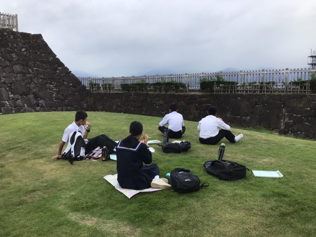 舞鶴城公園の広場でお弁当。天気も晴れていて気持ちの良いランチタイムでした。