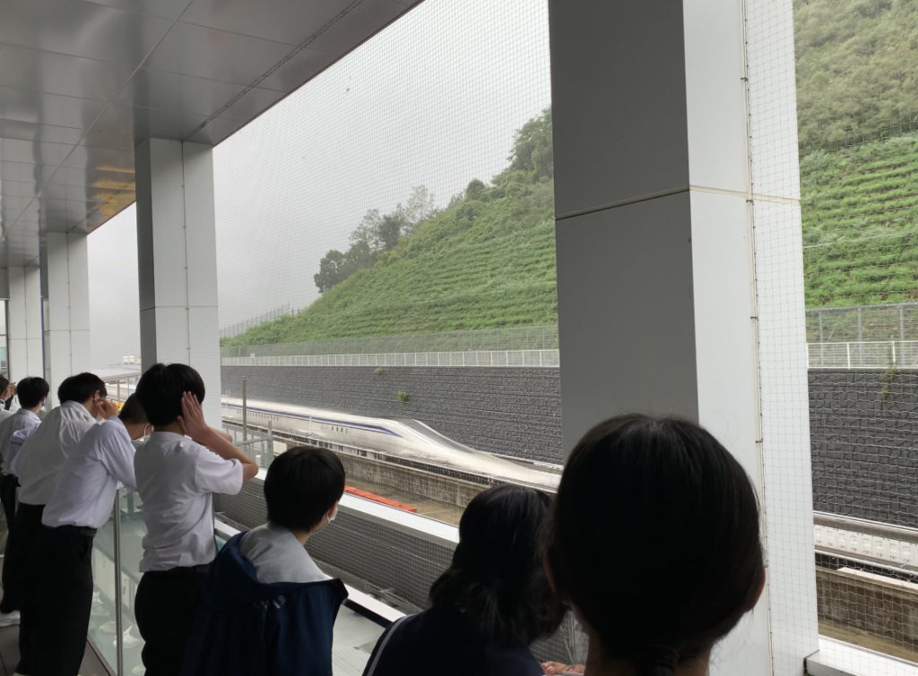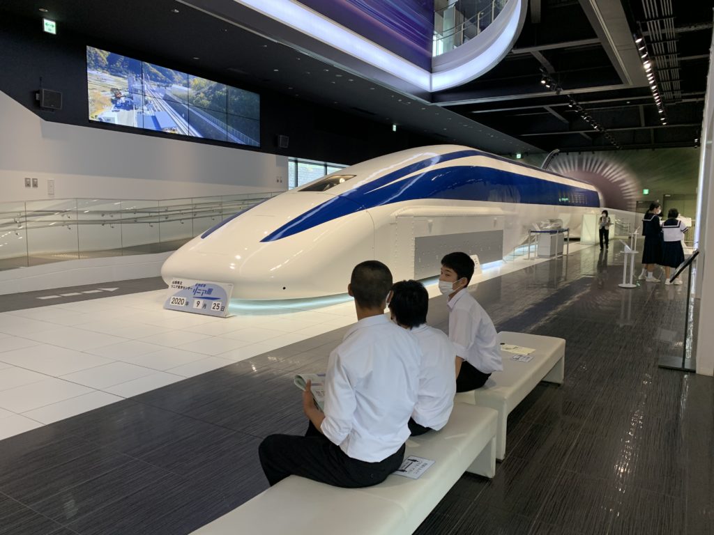 退所式の様子です。施設の方にしっかりとお礼を言うことができました。さぁ、最初の目的地、「リニア見学センター」に向け出発です!