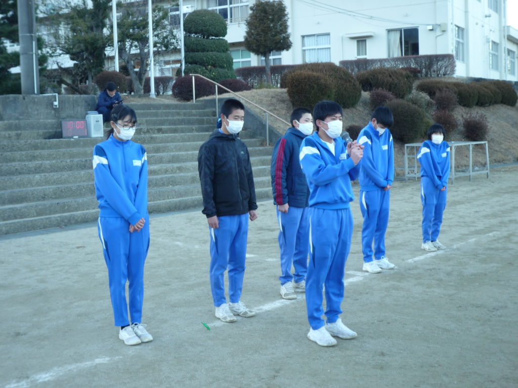 1月19日、全校生徒が体を動かすことで、運動に親しんだり、縦割り班の団結力を高めることを目的として、放送・集会・体育委員会が「体力作り」を企画・運営してくれました。第一回は「縦割り班対抗ドッジボール大会」を12月25日に行いました。第二回目の今回は10分間走です。