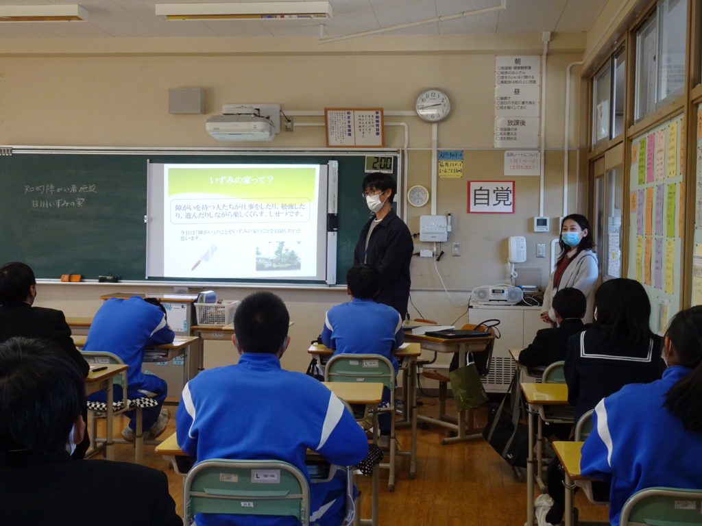 2021年12月3日 / 最終更新日時 : 2021年12月3日 白州中 全校生徒 2年生 いずみの家 福祉職業講話 11月24日6校時、2年生は、白州いずみの家の原さんと永田さんに、福祉職業講話をしていただきました。 コメントを残すメールアドレスが公開されることはありません。 ※ が付いている欄は必須項目ですコメント ※ 名前 メール サイト