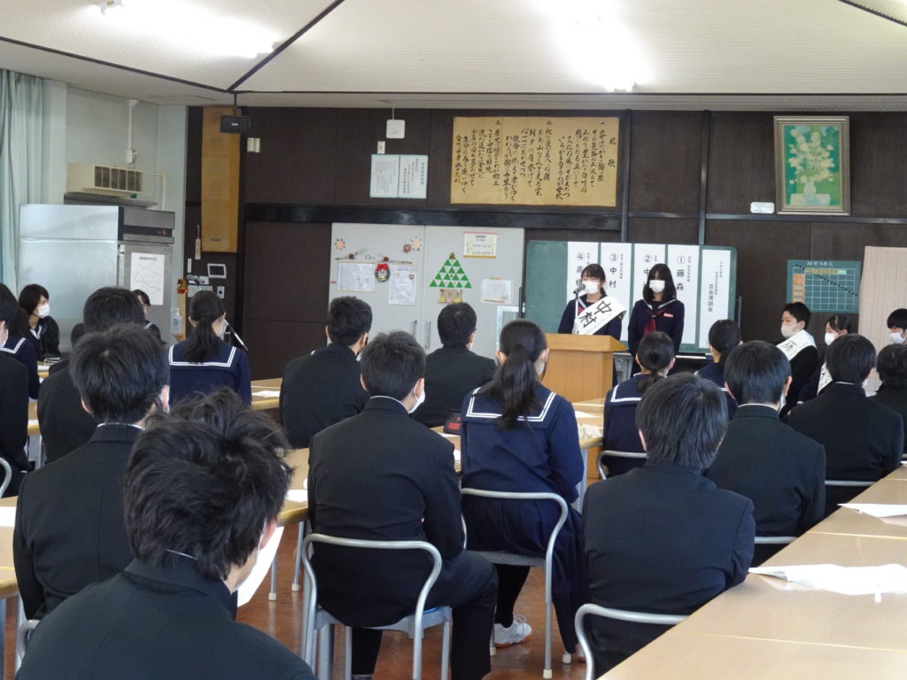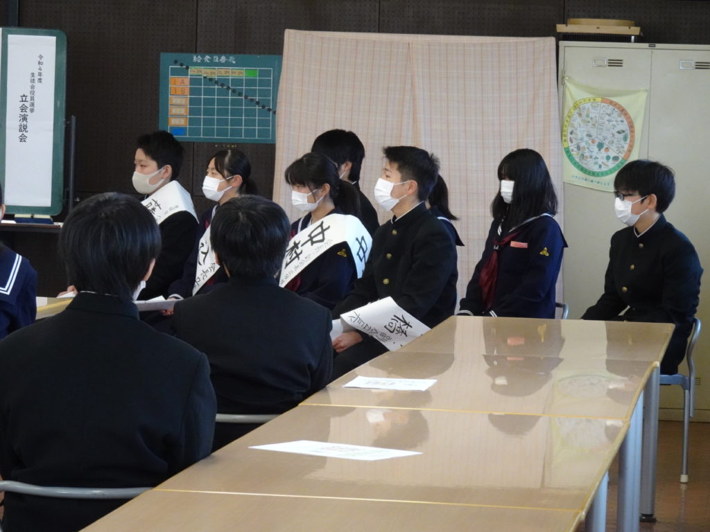 2021年12月10日 / 最終更新日時 : 2021年12月10日 白州中 全校生徒 R4年度生徒会役員選挙立ち会い演説会 12月10日1校時にR4年度生徒会役員選挙のための立ち会い演説会が行われました。4人の候補者と責任者が、よりよい白州中学校生徒会にするための公約を、熱く訴えました。 コメントを残すメールアドレスが公開されることはありません。 ※ が付いている欄は必須項目ですコメント ※ 名前 メール サイト