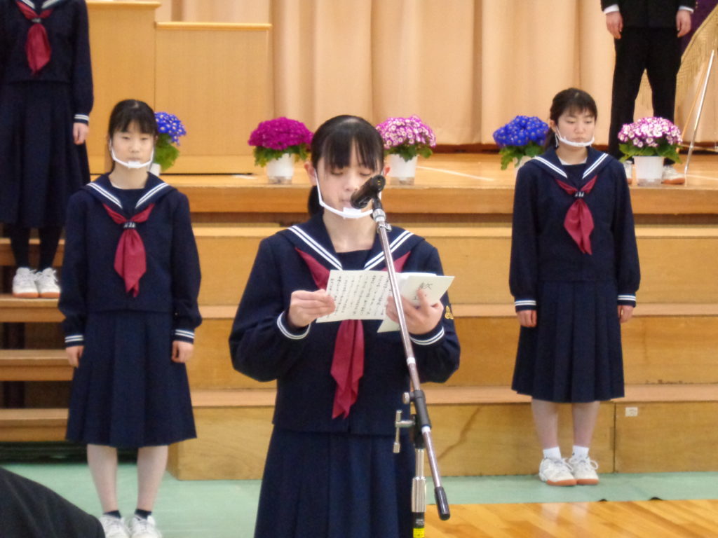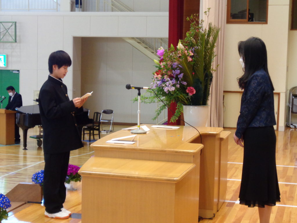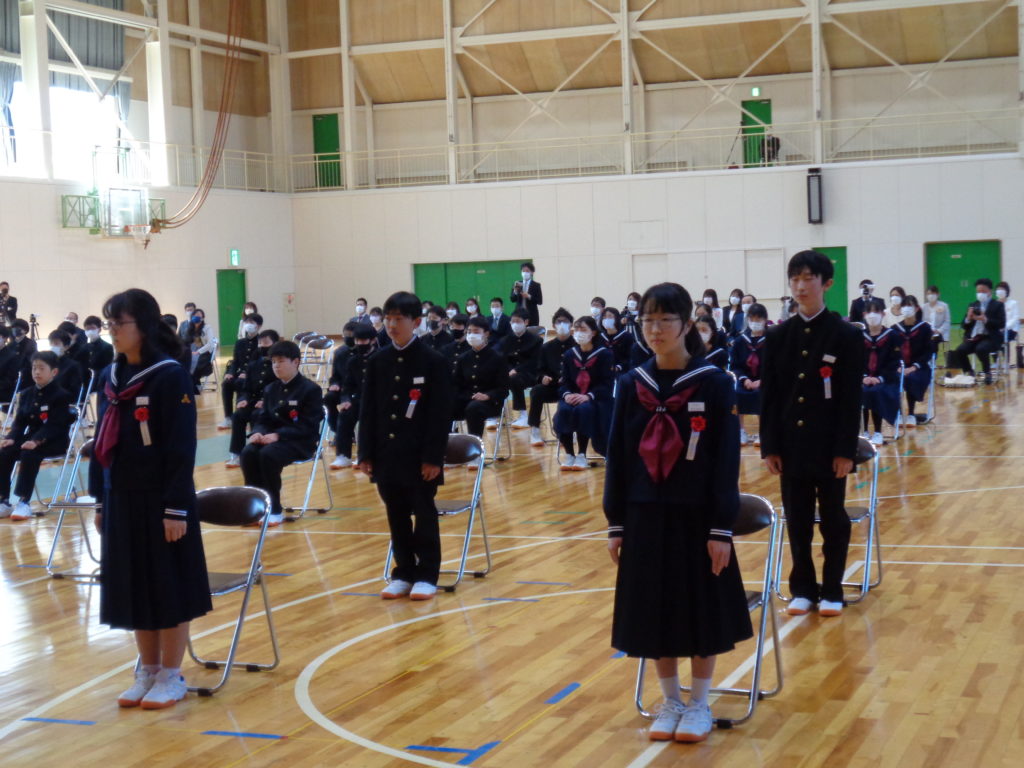 令和4年度入学式が行われました。ご来賓に北杜市及び北杜市教育委員会から1名と令和4年度PTA正副会長を迎え,23名の新入生が入学しました。学年主任・担任の先生に先導され,体育館に入場しました。緊張した面持ちでしたが,新入生呼名では,一人一人がしっかりと返事をする姿はとても立派でした。青柳校長から「これからの時代を生きるために必要な力を蓄える3年間にしましょう」とお祝いの式辞を頂きました。また,在校生代表として歓迎の言葉を生徒会長の中込陽菜さんがのべ,2,3年生が「ふるさと」の合唱を行い,歓迎しました。令和4年度は全校生徒61名,教職員22名,合計83名で白州中学校がスタートします。みんなで力を合わせ一人一人が輝く学校を創っていきたいと思います。